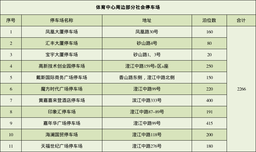3、体育中心周边仍有部分社会停车场实行收费管理,敬请留意!