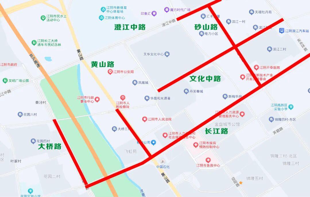 澄江中路(香山路至东外环路)、文化中路(凤凰路至东外环路)、黄山路(文化中路至长江路)、大桥北路(文化中路至长江路)、砂山路(澄江中路至长江路)、长江路(大桥北路至东外环路)等指定路段的路侧临时停车泊位。(路侧临时停车泊位示意图见下)